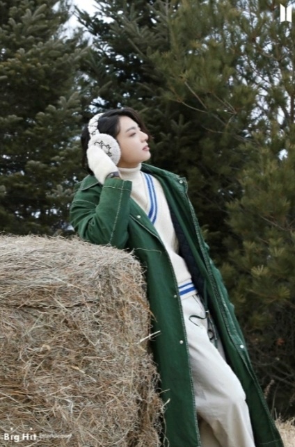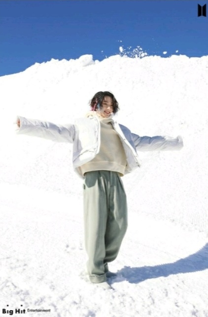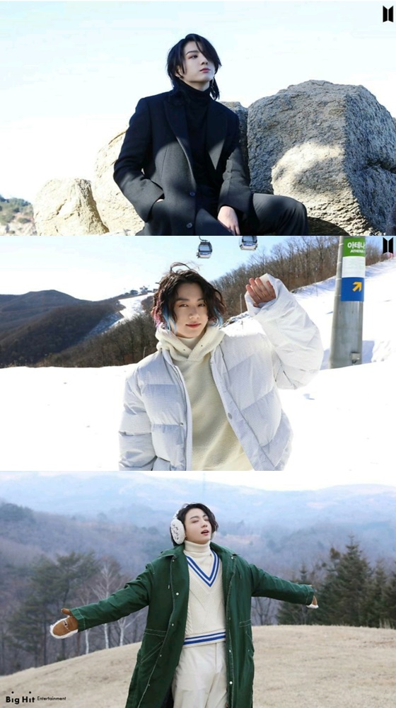 정국은 스키장 사진에서는 내리 쬐는 햇살에 눈이 부신 듯 손으로 막으며 다정하고 달달한 눈빛을 건네 설렘을 안겼다.