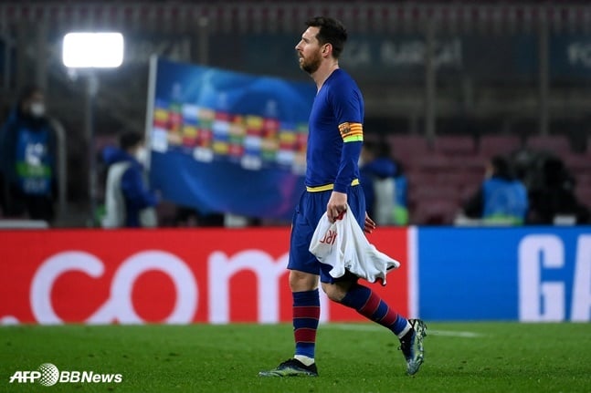 바르셀로나는 17일(한국시간) 홈 구장 캄프 누에서 열린 2020~2021 유럽축구연맹(UEFA) 챔피언스리그 16강 1차전 PSG와 경기에서 1-4로 패했다.