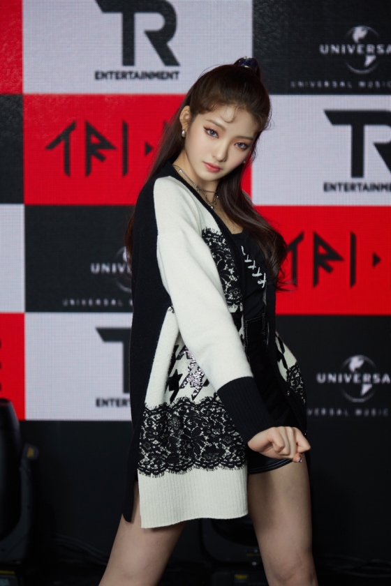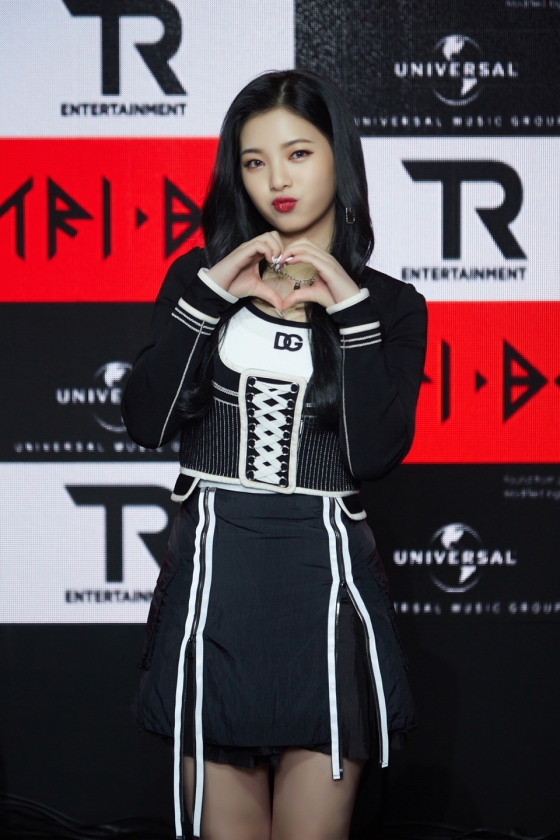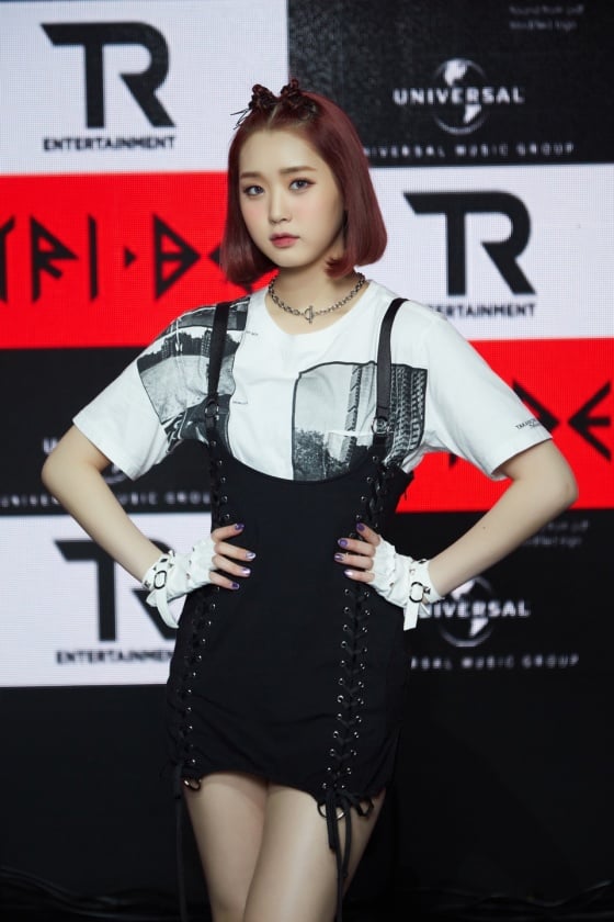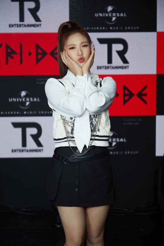 걸그룹 트라이비 소은 17일 온라인으로 진행된 첫 번째 싱글 'TRI.BEDaLoca (트라이비 다 로카)' 발매 기념 소케이스에서 포즈를 취하고 있다.트라이비는 가요계 대표 히트 메이커 신사동호랭이와 세계 최대 음반사 유니버설뮤직이 공동 제작한 걸그룹이다. 한국인 멤버 송선 진하 현빈 소은과 외국인 멤버 켈리 지아 미레로 구성됐다. / 사진제공 = 티알엔터테인먼트, 멜로우엔터테인먼트