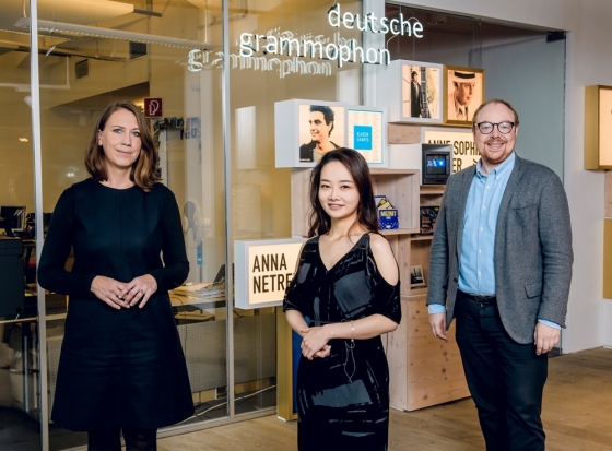(왼쪽부터) 엔젤리카 마이스너 DG 클래식 A&R 감독, 김봄소리, 클레멘스 트라우트만 DG 사장 /사진제공=유니버설뮤직