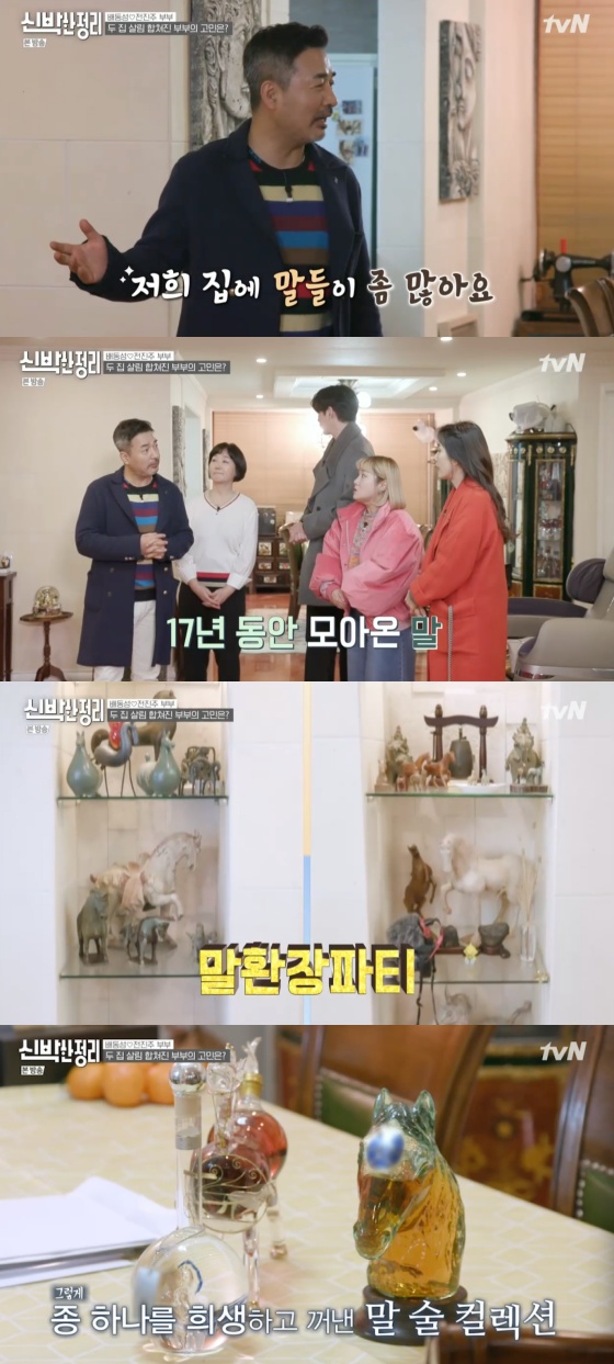 코미디언 배동성-요리연구가 전진주 부부가 '신박한 정리'에서 각종 말 장식을 공개했다.