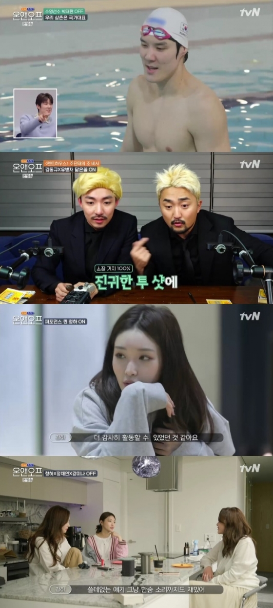 23일 오후 방송된 케이블채널 tvN 예능프로그램 '온앤오프'에서는 박태환, 청하, 김동규의 오프 일상이 공개됐다.