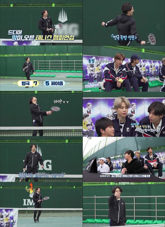 그러나 어릴 적 테니스를 배운 제이홉의 날카로운 연속 공격에 7대 7 동점을 맞이했고 정국은 허탈한 모습을 보였다.