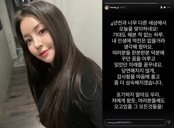 걸그룹 브레이브걸스가 4년 전 발매한 곡 '롤린'으로 역주행하며 화제를 일으키고 있는 가운데, 멤버 유정이 행복한 소감을 남겼다.