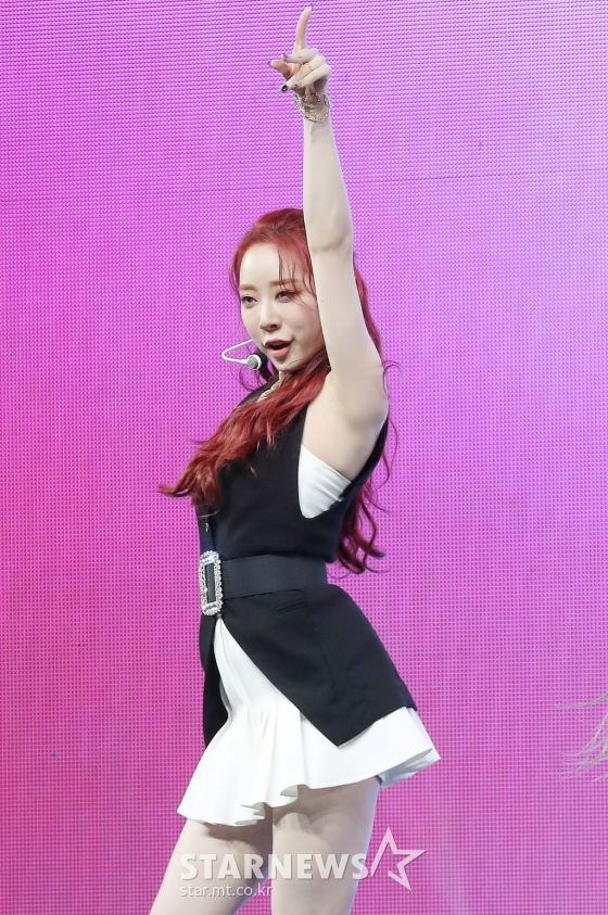 걸그룹 우주소녀 연정이 31일 오후 서울 광진구 광장동 예스24 라이브홀에서 진행된 새 미니앨범 'UNNATURAL'(언내추럴) 발매기념 쇼케이스에서 멋진 무대를 선보이고 있다.