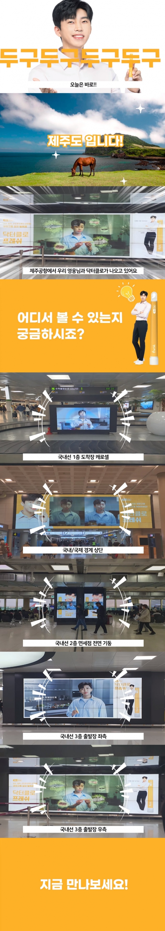 '닥터클로'는 임영웅 모델 발탁 후 서울 삼성동 코엑스 100미터 전광판 광고, 전국 CGV 체인 극장 광고에 이어 제주국제공항 광고까지 스케일이 다른 마케팅으로 화제를 모으고 있다. '닥터클로'의 본격적인 광고는 오는 19일부터 시작될 예정이라 더욱 기대를 높인다.