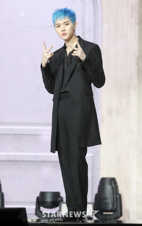 그룹 뉴이스트(NU'EST) 렌이 19일 오후 서울 광진구 광장동 예스24 라이브홀에서 진행된 정규 2집 'Romanticize'(로맨티사이즈) 발매 기념 쇼케이스에서 포즈를 취하고 있다.
