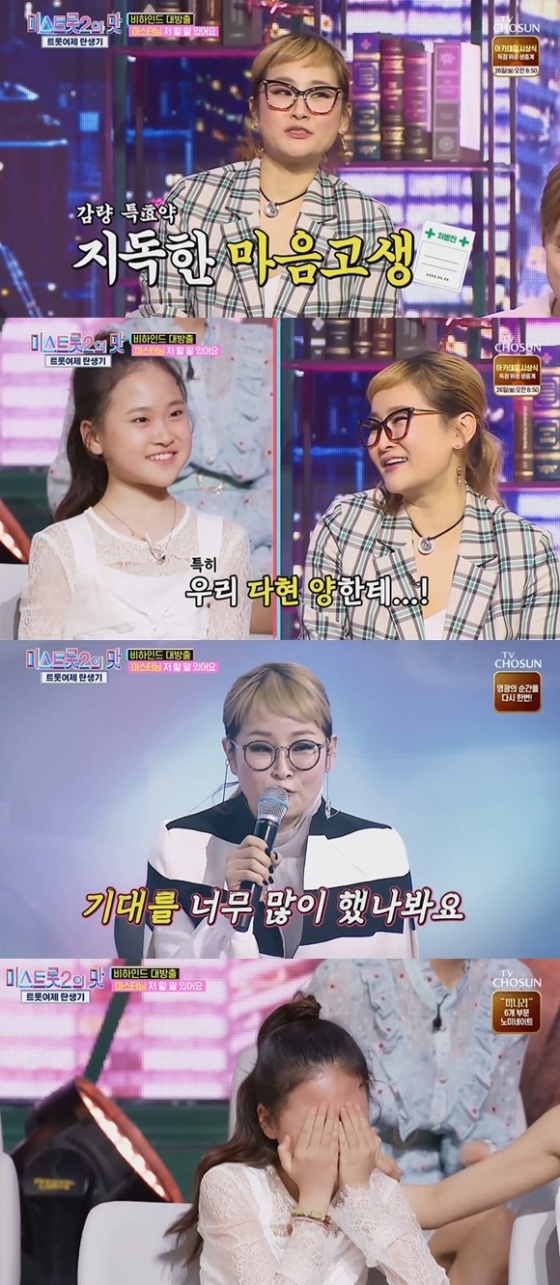 이 말에 김다현은 미소를 보였지만 결국 울음을 터트렸다. 김다현의 울음에 은가은 또한 눈물을 보였다. 김다현은 "조금 속상하긴 했는데 이렇게 또 말씀해 주시니 위로가 됐다"며 설명했다.