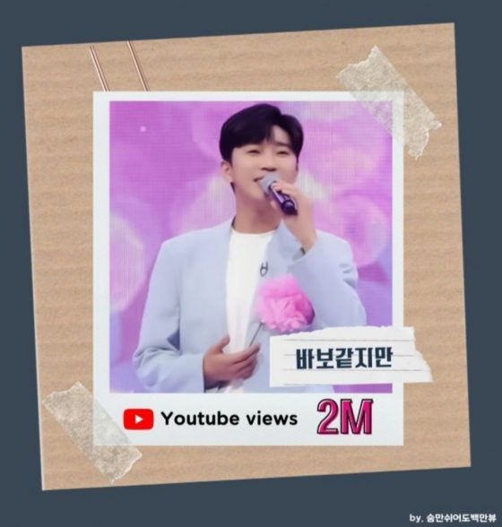 가수 임영웅이 '사랑의 콜센타'에서 스승 정동하와 사제 대결을 펼쳐 화제를 모았던 '바보 같지만'이 200만 뷰를 돌파했다.