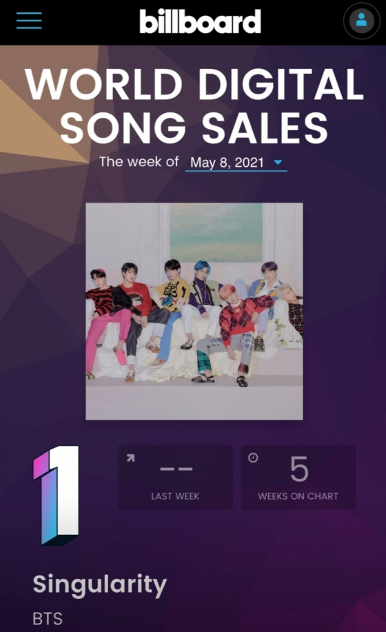 4일 빌보드 차트에 따르면 '싱귤래리티'는 차트에 재진입하며 월드 디지털 송 세일즈 차트 1위에 올랐다. 이로써 '싱귤래리티'는 방탄소년단 앨범 전체 곡 중 스물여덟 번째로 1위를 차지한 곡이 됐다.