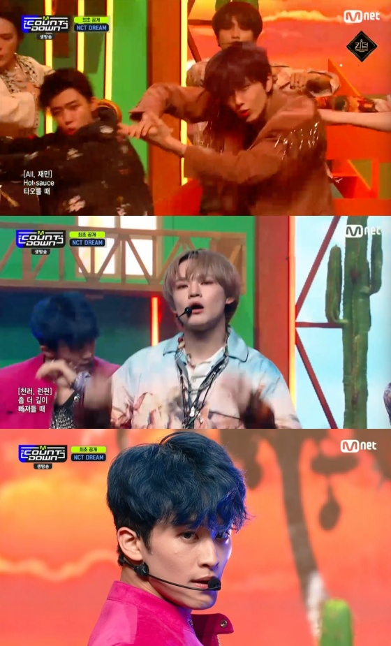 13일 오후 방송된 Mnet 음악 프로그램 '엠 카운트다운'에는 NCT DREAM의 첫 정규 앨범 '맛(Hot Sauce)' 동명의 타이틀곡 무대가 공개됐다.
