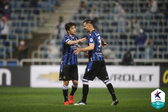 인천은 15일 인천축구전용경기장에서 열린 광주FC와 하나원큐 K리그1 2021 16라운드 홈 경기에서 2-1로 승리했다.