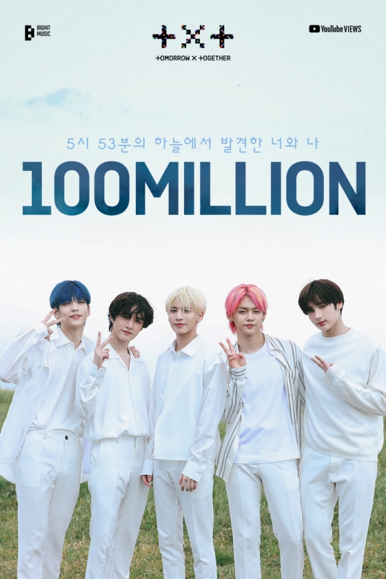 그룹 투모로우바이투게더(TOMORROW X TOGETHER·수빈, 연준, 범규, 태현, 휴닝카이)의 '5시 53분의 하늘에서 발견한 너와 나' 뮤직비디오가 1억뷰를 돌파했다.
