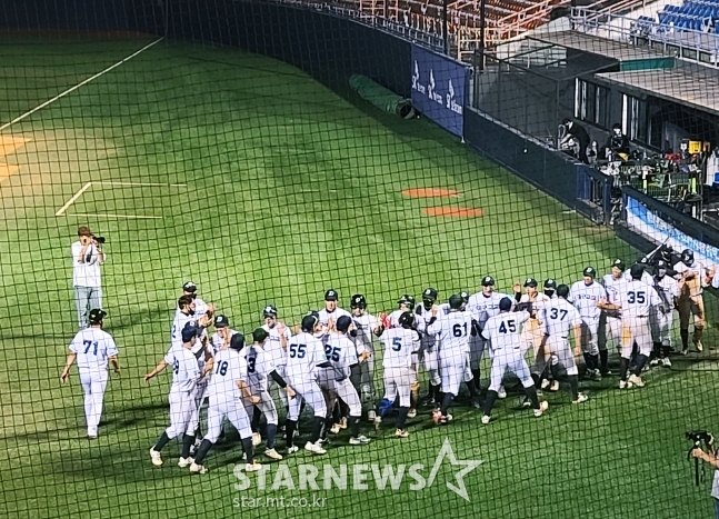 이날 대구고 선수들은 2-13으로 크게 뒤지며 패색이 짙은 9회초에도 결코 실망하지 않는 모습을 보였다. 9회 2점을 만회하자 더그아웃에 있는 선수들은 크게 소리치며 마치 경기를 뒤집을 듯한 기세를 뿜어냈다. 그러나 기적은 없었다. 마지막 타구가 병살타로 연결되며 27개의 아웃카운트가 모두 채워졌다. 이 순간, 3루 쪽 강릉고 더그아웃에 있던 푸른 유니폼을 입은 선수들이 마운드를 향해 뛰쳐 나왔다. 강릉고 학부모들도 목소리를 더욱 크게 냈다. 강릉고 선수들은 마운드를 둥글게 빙 둘러싼 뒤 뒤로 쓰러지는 세리머니를 펼쳤다.