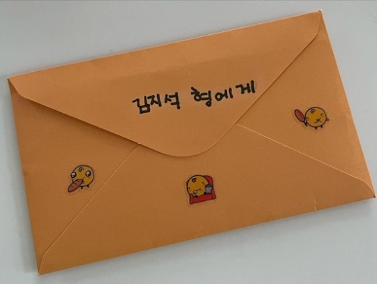 공개된 사진 속에는 초등학생의 편지 내용이 담겨있다. 한 초등학생은 김지석에게 "나를 위해서 간식 박스를 만들었더라. 정말 감사하다"라며 "KBS 2TV 드라마 '동백 꽃 필 무렵'에서 나왔을 때 우리 모두 재미있게 봤다. 우리 가족 모두 다 형 팬이다. 스타 연예인 형을 알게 돼 행복하고 앞으로도 대박 나세요"라고 전했다.