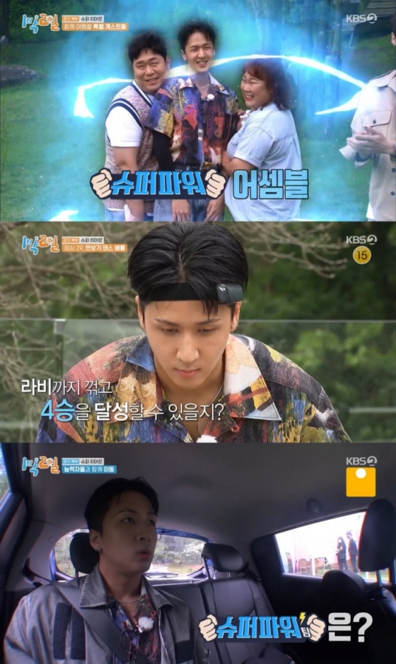 이날 방송은 게스트 백지영, 김민경, 러블리즈 미주를 초대한 '슈퍼 히어로' 특집의 첫 번째 이야기로 꾸며졌다. 멤버들과 게스트 세 사람은 예능에 필요한 세 가지 능력인 슈퍼파워, 슈퍼목청, 슈퍼열정에 따라 세 팀을 꾸렸다.