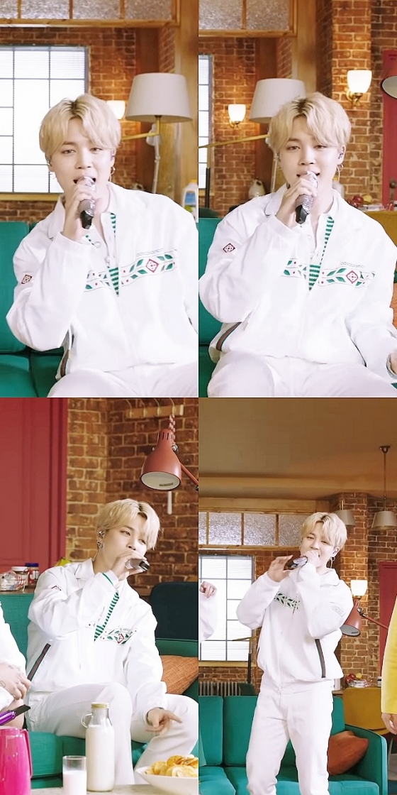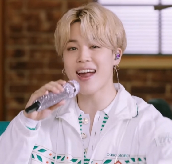 지민은 지난 3일(한국시간) SiriusXM을 통해 공개된 영상에서 집안을 배경으로 한 'Dynamite'에서 금발 헤어와 진주 버튼 피케 티셔츠를 비롯한 그린 포인트의 화이트 착장으로 싱그러운 숲속 요정 비주얼을 발산하며 시선을 모았다.