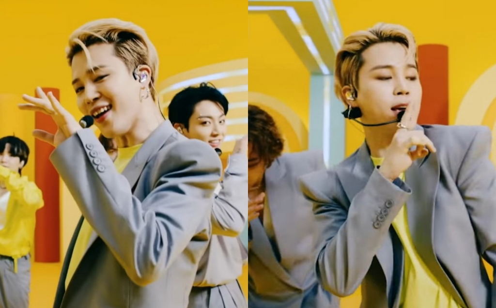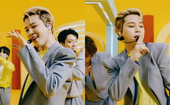 곧바로 교차 무대를 통해 이어진 'Butter'에서 올백 헤어와 파워 숄더 포인트의 그레이 수트를 착용해 섹시한 레트로 남신으로 완벽 변신한 지민은 세계적 명성의 메인 댄서 기량을 한껏 발휘하며 어느 위치에서나 압도적 존재감을 과시했다.