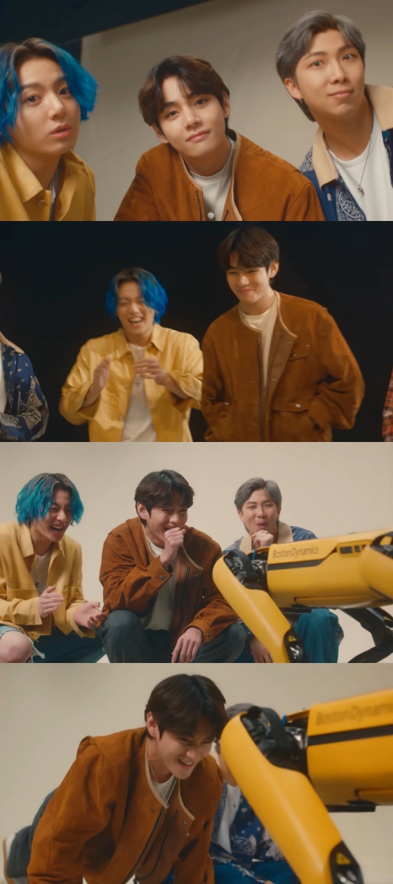 브라운색 재킷을 입고 편안한 차림으로 촬영에 임한 뷔는 로봇강아지의 동작 하나하나에 아이처럼 해맑게 웃는 얼굴로 반응, 팬들을 사로잡았다. 동물을 사랑하는 뷔는 마치 진짜 강아지를 보는 것처럼 다정스런 눈빛으로 스팟을 향해 보냈다.