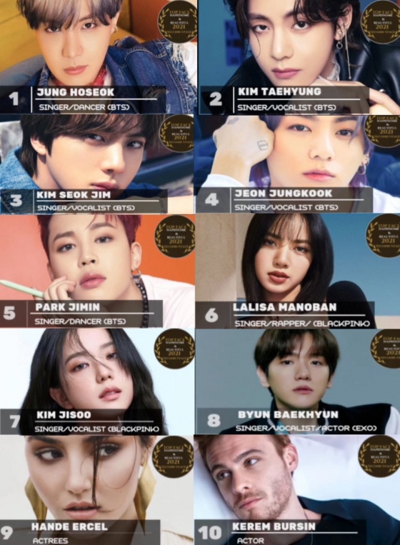 제이홉은 지난 4일 ENTERTAINMENT AWARDS가 공식 유튜브 채널을 통해 밝힌 TOP FACE HANDSOME AND BEAUTIFUL 2021 2단계 리스트에서 1위에 올랐다.