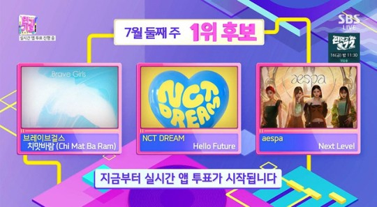 '인기가요' 브레이브걸스vs엔시티 드림vs에스파, 1위 주인공 누구?