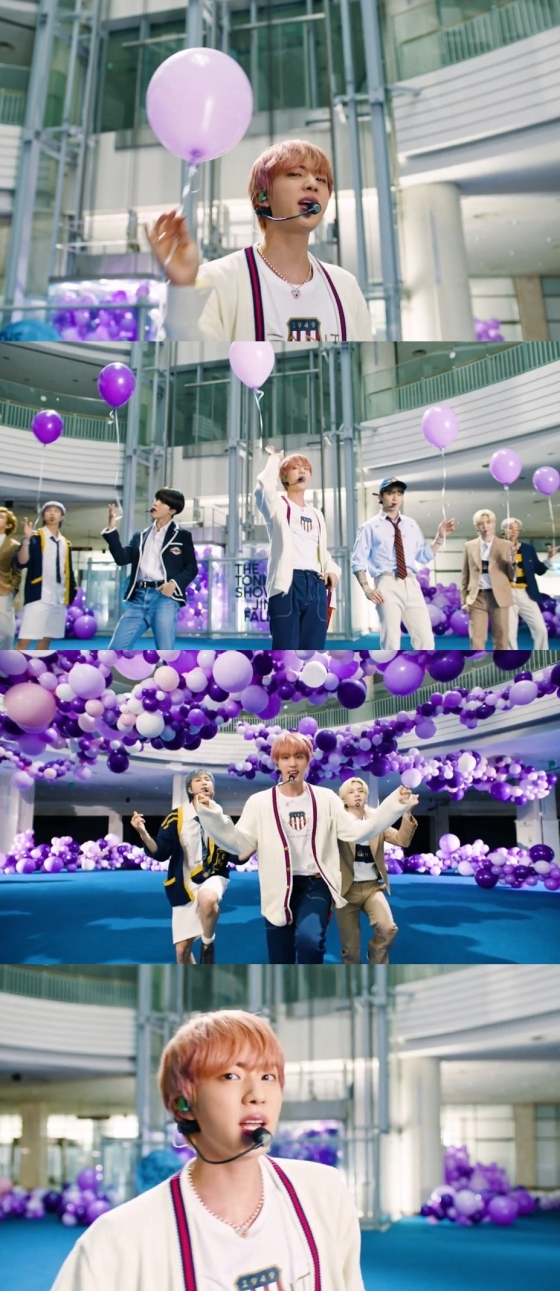방탄소년단은 지난 14일 '더 투나잇 쇼 스타링 지미 팰런(The Tonight Show Starring Jimmy Fallon, 이하 지미 팰런 쇼)'에 출연하여 '퍼미션 투 댄스(Permission to Dance)' 무대를 공개했다.