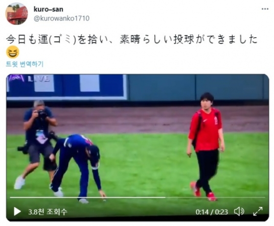 하지만 일본 매체 풀카운트는 오타니의 강속구가 아닌 다른 장면을 주목했다. 풀카운트는 15일 "오타니는 스승의 가르침을 꿈의 무대(메이저리그 올스타전)에서도 실천했다"면서 오타니가 이날 경기 전 외야 잔디에 떨어진 쓰레기를 주워 자신의 뒷주머니에 넣는 모습을 눈여겨봤다.