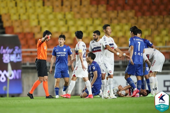 앞서 그는 지난 20일 수원FC와의 경기 중 전반 33분과 후반 28분 두 차례 경고를 받아 퇴장조치됐다. 당시 수원삼성도 한석종 퇴장 이후 수적 열세에 몰려 후반 막판 2실점을 허용하고 수원FC에 1-2로 졌다.