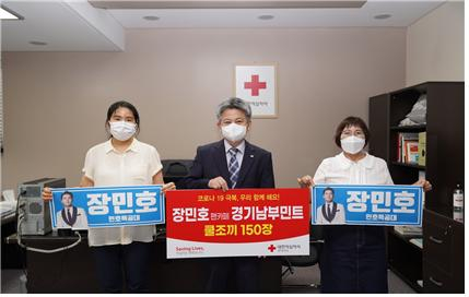 장민호 팬카페 경기남부 민트는 지난 7월 30일 대한적십자사 경기지사를 찾아 320만 원 상당 쿨조끼 150벌을 기부, 전달했다.