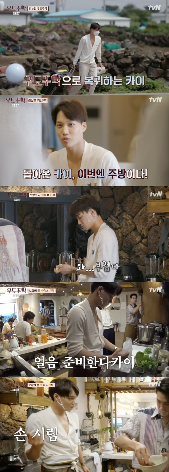 2일 오후 방송된 tvN 예능프로그램 '우도주막'에서는 카이가 돌아와 활약했다.