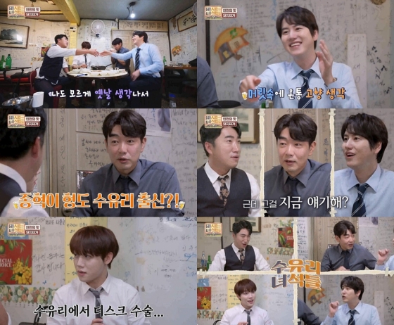 곧이어 바지락전, 갑오징어 두루치기, 돼지찌개, 간자미찜 먹방이 펼쳐졌고, 수유리 이야기로 공감대를 형성한 멤버들이 '수유리 녀석들'로 한층 가까워진 모습을 보여 훈훈함을 자아냈다. 특히 막내 이장준은 규현이 언급한 이니셜 '케이'를 '러블리즈 케이'로 오해하는 해프닝으로 폭소를 유발하기도.