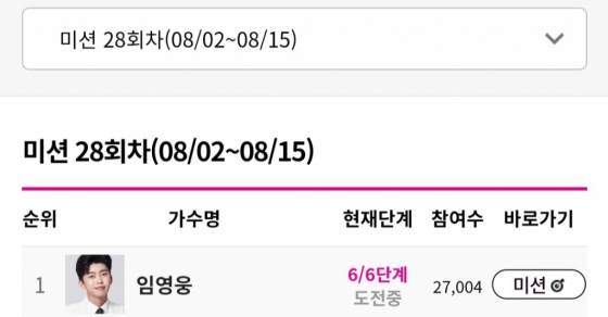 가수 임영웅의 팬클럽 영웅시대가 아이돌차트 미션을 11분만에 6단계까지 달성하며 '넘버원 메이커' 면모를 빛냈다.