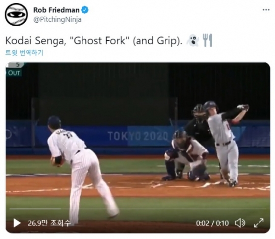 일본 매체 풀카운트는 2020 도쿄올림픽 야구 녹아웃 스테이지 2라운드 미국전에서 보여준 센가 코다이(28·소프트뱅크 호크스)의 구위에 놀란 미국 현지의 반응을 3일 전했다. 풀카운트에 따르면 센가의 공을 본 미국 팬들은 "유령 포크", "대단한 제구력", "스플리터인가요?" 등 연신 감탄사를 내뱉었다.
