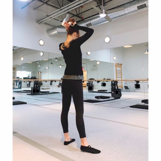 공개된 사진 속 손태영은 운동복을 착용하고 실내 운동을 준비하는 모습.