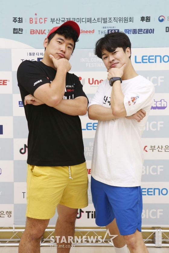 개그맨 김병선, 김동하가 5일 오전 온라인으로 진행된 '제9회 부산국제코미디페스티벌(BICF)' 기자간담회에 참석해 포즈를 취하고 있다.