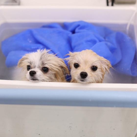 공개된 사진 속에는 고소영의 반려견 두 마리가 목욕을 하는 모습이 담겼다.