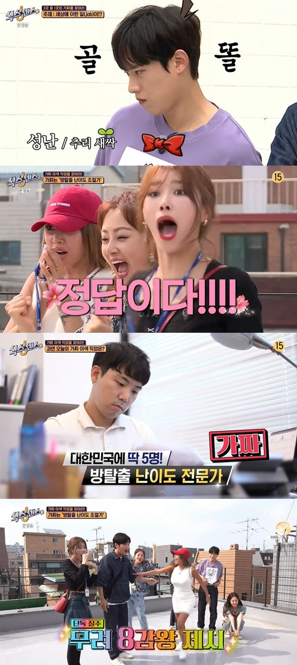 한편 이날 가짜로 밝혀진 이색 직업은 '방탈출 난이도 조절가'였다. 이상엽, 미주, 오나라, 제시가 정답을 맞혔다. 제시는 8연속 정답을 맞히며 8감왕에 등극했다.