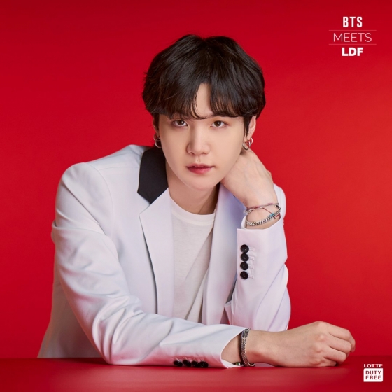 방탄소년단이 모델로 활약 중인 롯데면세점은 공식 인스타그램을 통해 'BTS meets LDF' 화보공개 #EVENT'라는 글과 '매혹적인 RED+화이트 슈트를 입은 BTS의 조합은?! 이열치열! 뜨거운 여름을 더 달궈줄 레드 컷 화보를 공개합니다'라는 설명과 함께 슈가의 화보를 공개했다.
