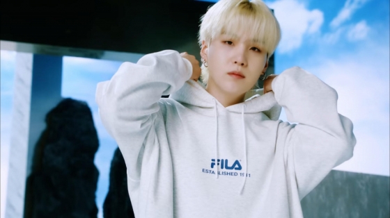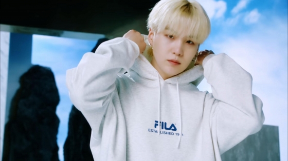 공개된 화보에서 슈가는 잘생긴 얼굴이 돋보이는 금발에 화이트 후디를 매치해 눈길을 사로잡았다. 슈가는 남다른 패션 감각으로 발랄함에 카리스마를 더했다.