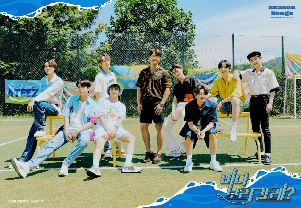 에이티즈는 13일 공식 SNS를 통해 에이티즈와 김종국이 함께한 음원 '바다 보러 갈래?'의 단체 콘셉트 포토를 공개해 기대감을 높였다.