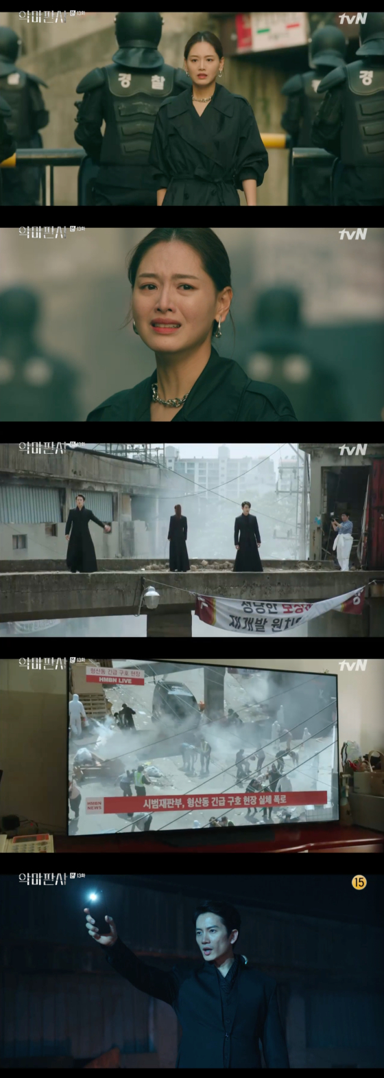 고인국, 조민성 등 강요한의 조력자들은 방송국을 진압하고 통로를 막으며 이에 협조했고, 허중세는 전기를 다 끊어버리라고 협박해 방송을 중지시켰다. 하지만 시범재판 어플의 스트리밍은 중지되지 않았고, 강요한과 빈민들은 핸드폰 플래시를 일제히 키며 방송을 이어갔다. 강요한은 "어둠은 빛을 이길 수 없다"며 조명을 치켜들었고, 빈민들은 강요한의 구호에 맞춰 죽창에 맞서며 눈길을 모았다. 순조롭던 끝에는 충격적인 결말이 남아있었다. 김가온을 찾아온 윤수현은 총에 맞아 사망하며 충격을 안겼다.