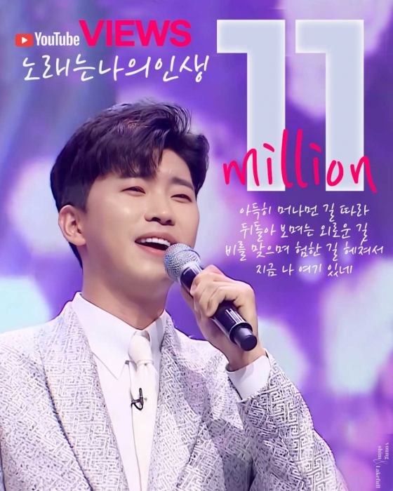 감미로운 임영웅의 목소리에 빠지게 되는 '노래는 나의 인생' 영상이 1100만 뷰를 달성했다.
