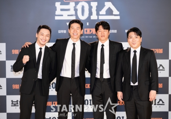 배우 변요한, 김무열, 김희원, 박명훈이 19일 오전 온라인 생중계로 진행된 영화 '보이스'(감독 김선, 김곡) 제작보고회에 참석해 포즈를 취하고 있다.