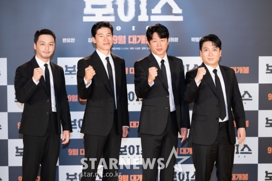 배우 변요한, 김무열, 김희원, 박명훈이 19일 오전 온라인 생중계로 진행된 영화 '보이스'(감독 김선, 김곡) 제작보고회에 참석해 포즈를 취하고 있다.