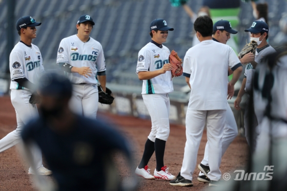 그럼에도 불구하고 NC는 후반기 5승2무3패의 호성적을 거두고 있다. 더욱이 치열한 선두 다툼을 벌이고 있는 LG를 상대로 2연승을 챙겼다. 6위로 시작했던 후반기 순위도 4위까지 끌어올렸다. 비록 디펜딩 챔피언으로서 아쉬울 만하지만 가을야구 꿈을 충분히 꿀 수 있는 상황. 사령탑은 이런 상황을 어떻게 보고 있을까. LG와 4연전에 앞서 이른바 '후반기 포기론'에 대해 이동욱 NC 감독은 "아직 안 끝났잖아요"라고 되물은 뒤 "만약 숫자상으로 안 된다면 포기를 하는 게 맞다. 그러나 지금은 아니다. 누가 없다고 포기하면 안 된다. 동기 부여도 더욱 해야 한다. 결국 이기는 게 목표"라고 단호하게 말했다.