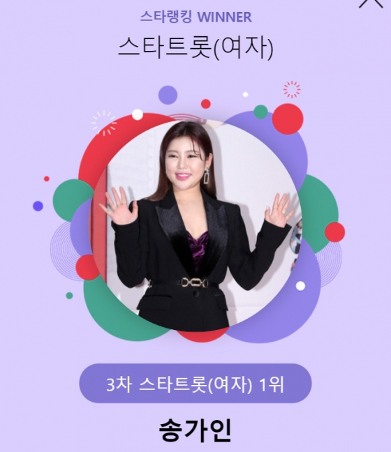 가수 송가인이 스타랭킹 스타트롯 3차 1위를 거머쥐었다.