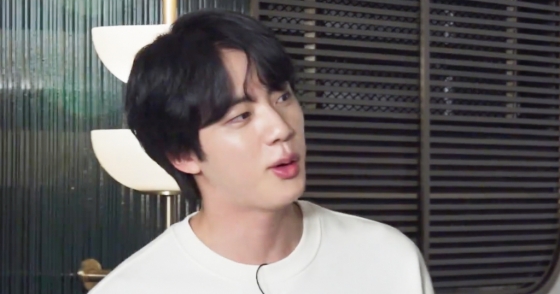이날 방송에서 진은 댄디한 스타일의 머리, 앞머리 사이로 살짝 보이는 봉긋하고 잘생긴 이마, 금방이라도 이슬이 맺힐 것 같이 맑고 깨끗한 피부, 입체적이고 뚜렷한 이목구비로 천상 아이돌의 모습을 보여주었고, 아이보리색의 트레이닝 복에 옐로우 색의 슬리퍼를 매치하여 편안하면서도 감각적인 스타일을 연출했다.