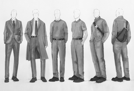 디올 남성 컬렉션의 아티스틱 디렉터 킴 존스가 선보이는 파리 생제르맹 팀의 캐주얼 및 포멀한 룩은 블랙 컬러와 네이비 블루 컬러를 조합하여 캐주얼 하면서도 격식 있는 분위기를 연출한다. 특히, 해링턴 재킷과 니트 스웨터, 폴로 셔츠로 구성된 캐주얼한 룩은 'Paris Saint-Germain' 패치와 'CD 아이콘' 이니셜 자수 장식을 더해 시선을 사로잡는다. 디올의 아이코닉한 Dior Oblique 모티브가 돋보이는 블랙 가죽 소재와 Dior Explorer 더비 슈즈를 매치하여 캐주얼한 매력을 더했다.
