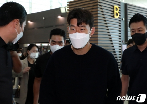 8일 인천국제공항을 통해 영국으로 출국한 토트넘 홋스퍼 손흥민(가운데). /사진=뉴스1