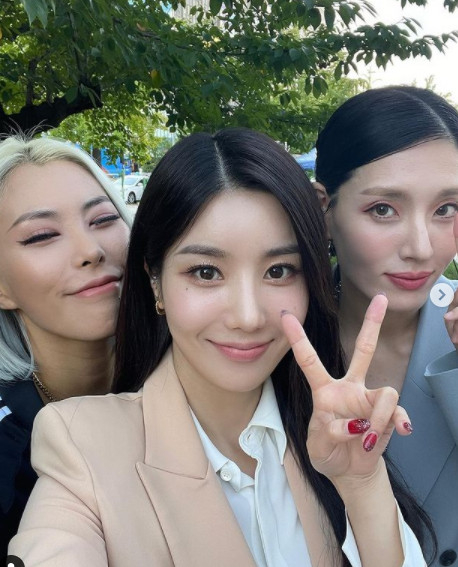 함께 공개된 사진 속 권은비는 최근 엠넷 서바이벌 프로그램 '스트릿 우먼 파이터' 출연 중인 모니카, 가비와 카메라를 응시한다. 세 사람의 조합이 이목을 끈다.